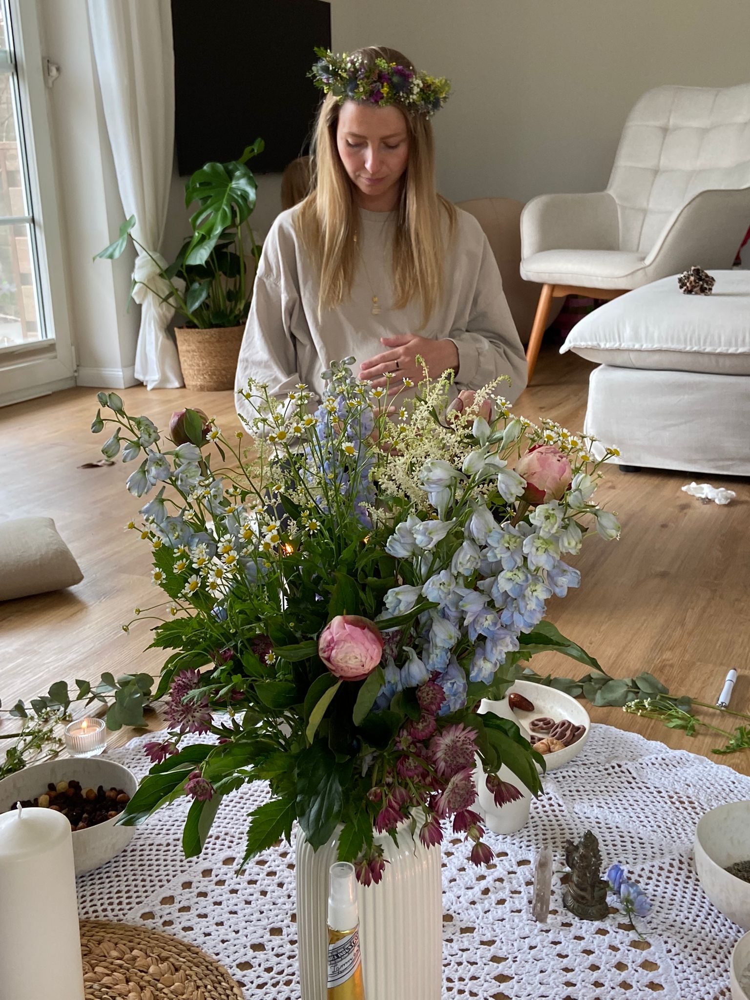 Diese wundervolle Zeremonie wird dabei ganz individuell auf die werdende Mutter abgestimmt. Wir treffen uns dafür bei der Schwangeren zu Hause, in der Natur oder einem angemieteten Raum (hierfür würden zusätzliche Kosten entstehen).